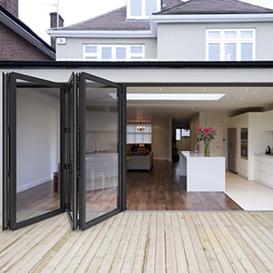 Our bi-fold doors are available in a range of materials, such as aluminium and uPVC, and a variety of designs, panel size and panel number. They also come in a wide array of colours and finishes. All of which allows you to beautifully blend your new bi-fold door into your home, creating a coordinated, cohesive finish.